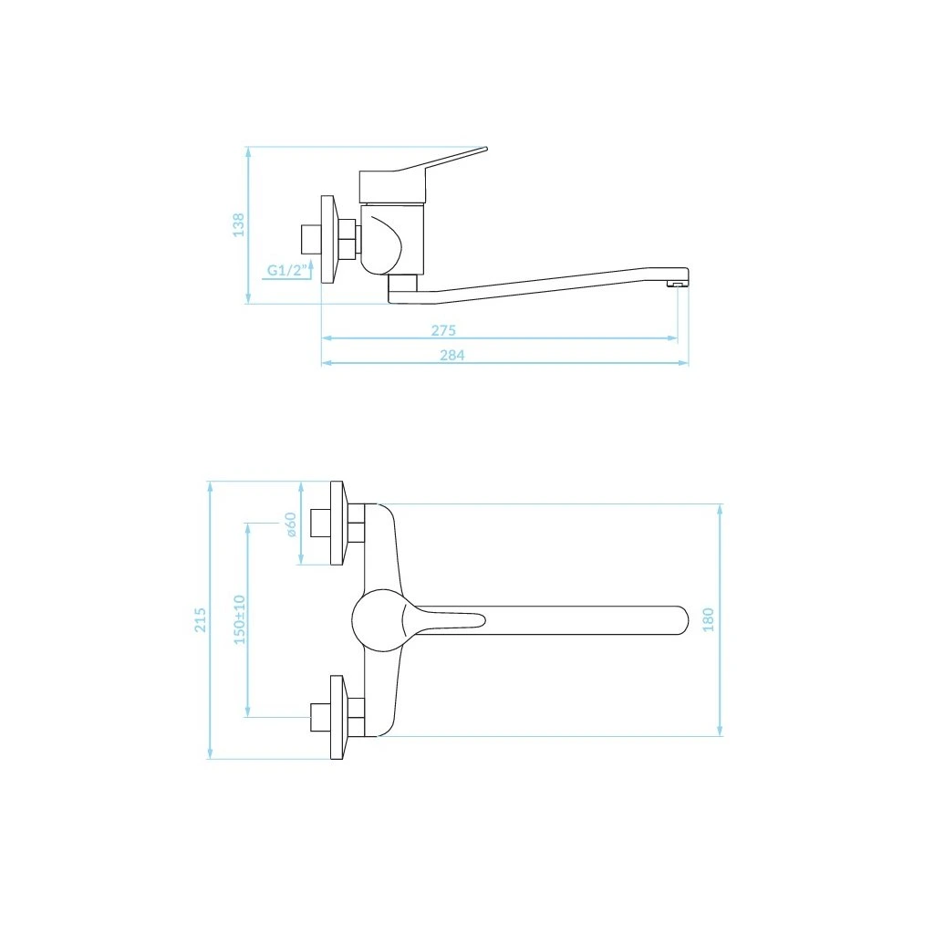 Kuchinox Tibi, nástěnná umyvadlová baterie L-275, chromová, LAV-BQY_080D