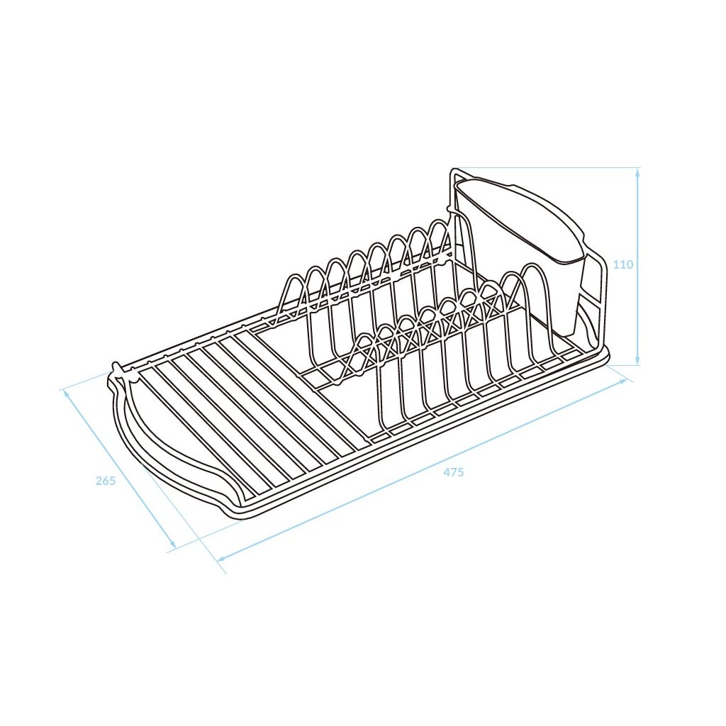 Rozměry sušičky Torino jsou 110 mm x 475 mm x 265 mm. Může být umístěn na desku, na odkapávači dřezu nebo do kuchyňské skříňky. Poslední řešení je ideální pro interiéry, kde je důležité zachovat cenný povrch pracovní desky. Malý model je užitečný v malých kuchyňkách nebo společenských místnostech. Abyste jej udrželi čistý, pravidelně otírejte jeho povrch houbou namočenou v prostředku na mytí nádobí.