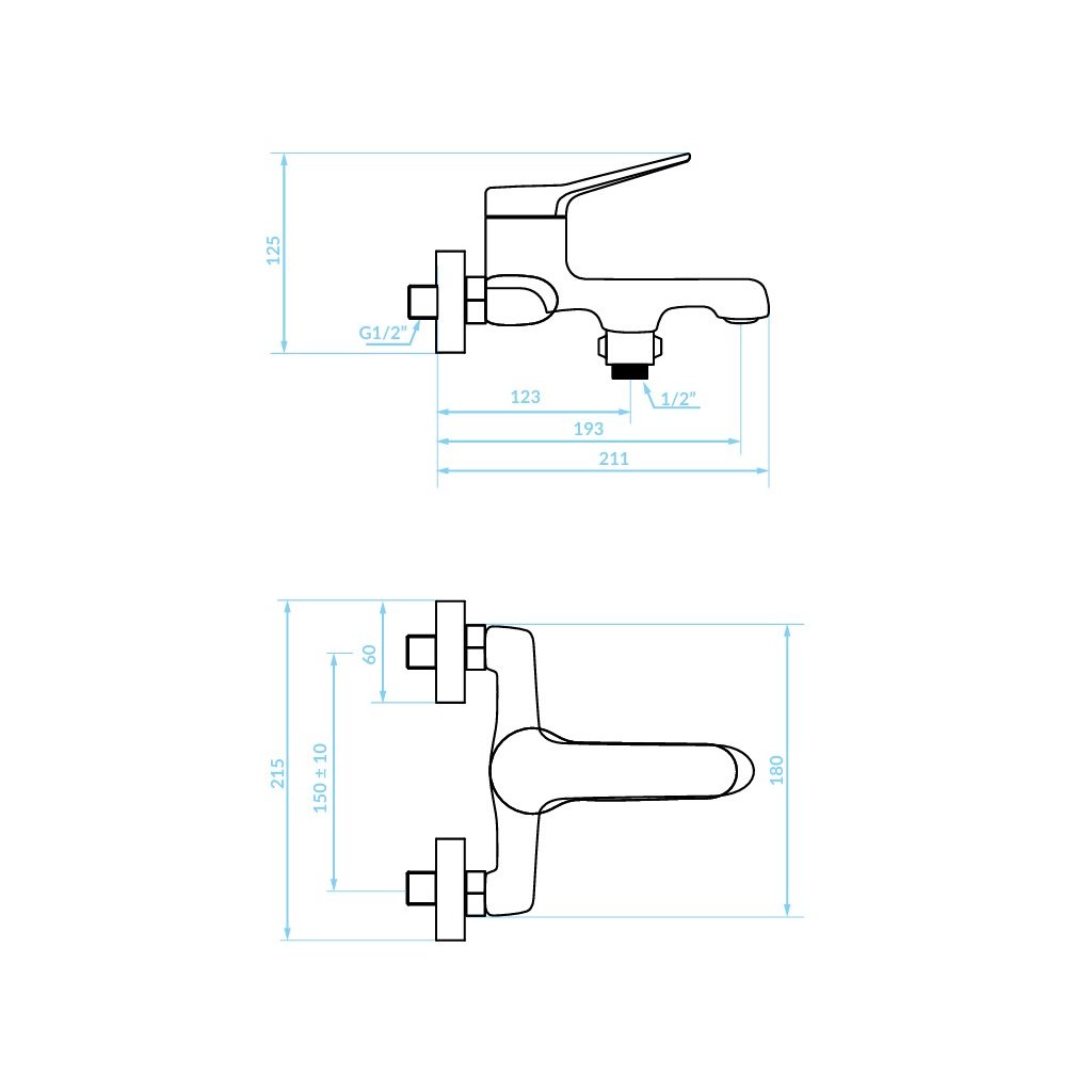 Kuchinox Villa, nástěnná vanová baterie, chromová, LAV-BVK_010D