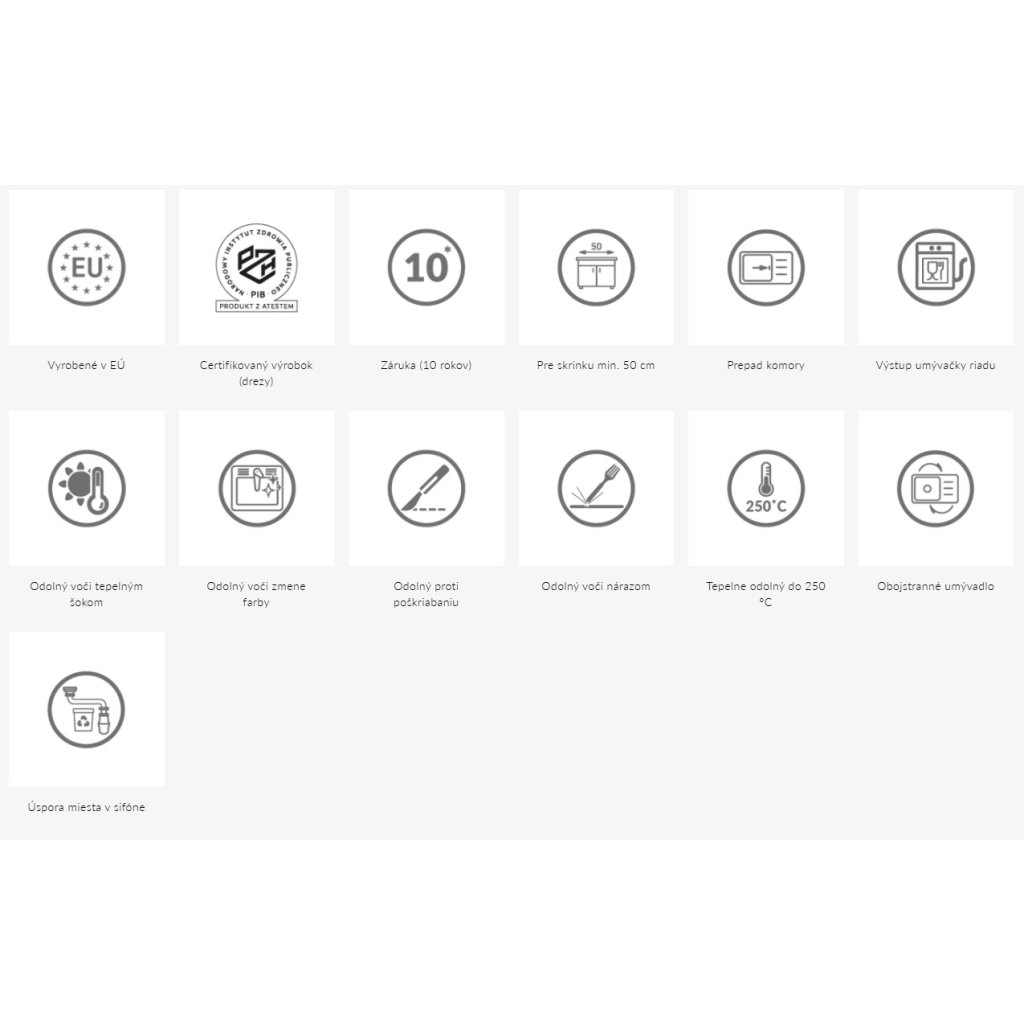 - Typ: 1-komorový obdélníkový kuchyňský dřez