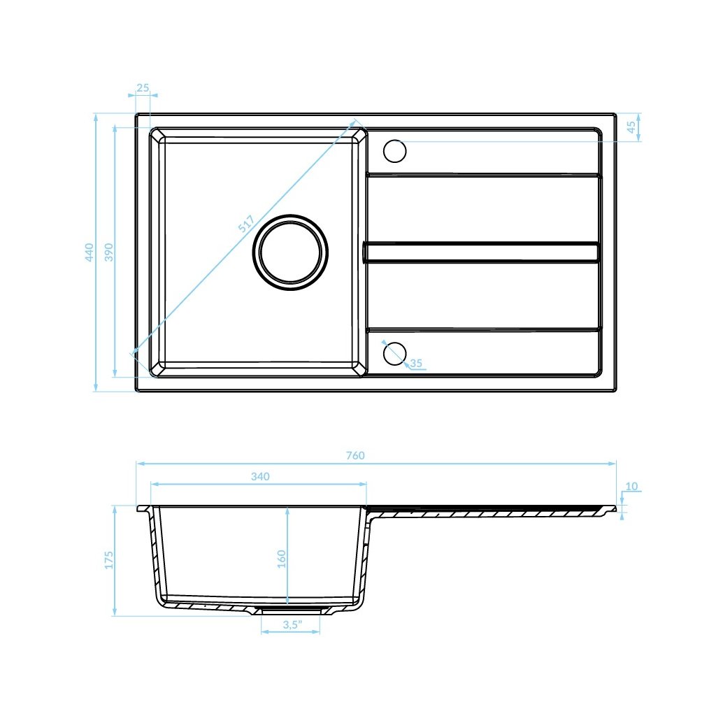 1-komorový granitový dřez Viti s odkapávačem spojuje eleganci s funkčností a nabízí moderní řešení pro každou kuchyni. Jeho jemná šedá barva dodává stylový nádech, který se perfektně hodí do různých interiérových designů. Kuchyňský dřez je určen ke každodennímu použití a poskytuje pohodlí při mytí a sušení nádobí. Velký odkapávač usnadňuje odkládání nádobí a další vybavení, jako je připojení myčky nádobí nebo prostorově úsporný sifon, výrazně zvyšuje komfort používání. Dřez Viti je vyroben ze žuly a vyznačuje se výjimečnou trvanlivostí a odolností vůči mechanickému poškození, jako jsou škrábance a nárazy. Tento materiál je odolný vůči extrémním teplotám a skvrnám od kávy, čaje a červeného vína, díky čemuž umyvadlo nejen vypadá stylově, ale vydrží i mnoho let.