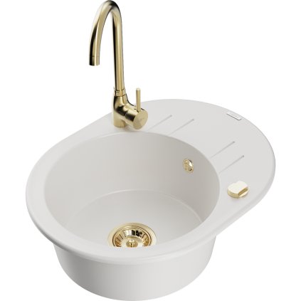 Mexen Vito, 1-komorový granitový dřez 520x490x210 mm, béžová baterie Rita, béžová, 6503-69-670300-69