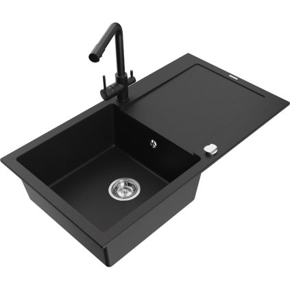 Mexen Leo, dřez granitový 900x500x190 mm, 1-komorový a černá baterie Duero, černá, 6501-77-671600-70