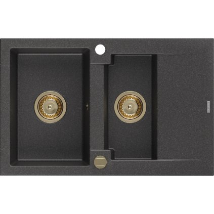 Mexen Gaspar, granitový dřez 737x475x177 mm, 1,5-komorový, béžová se zlatým sifonem, 6507731505-69-G