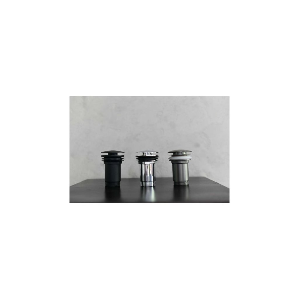 Vypouštěcí zátka Click-Clack s přepadem a nátrubkem pro umyvadlo.