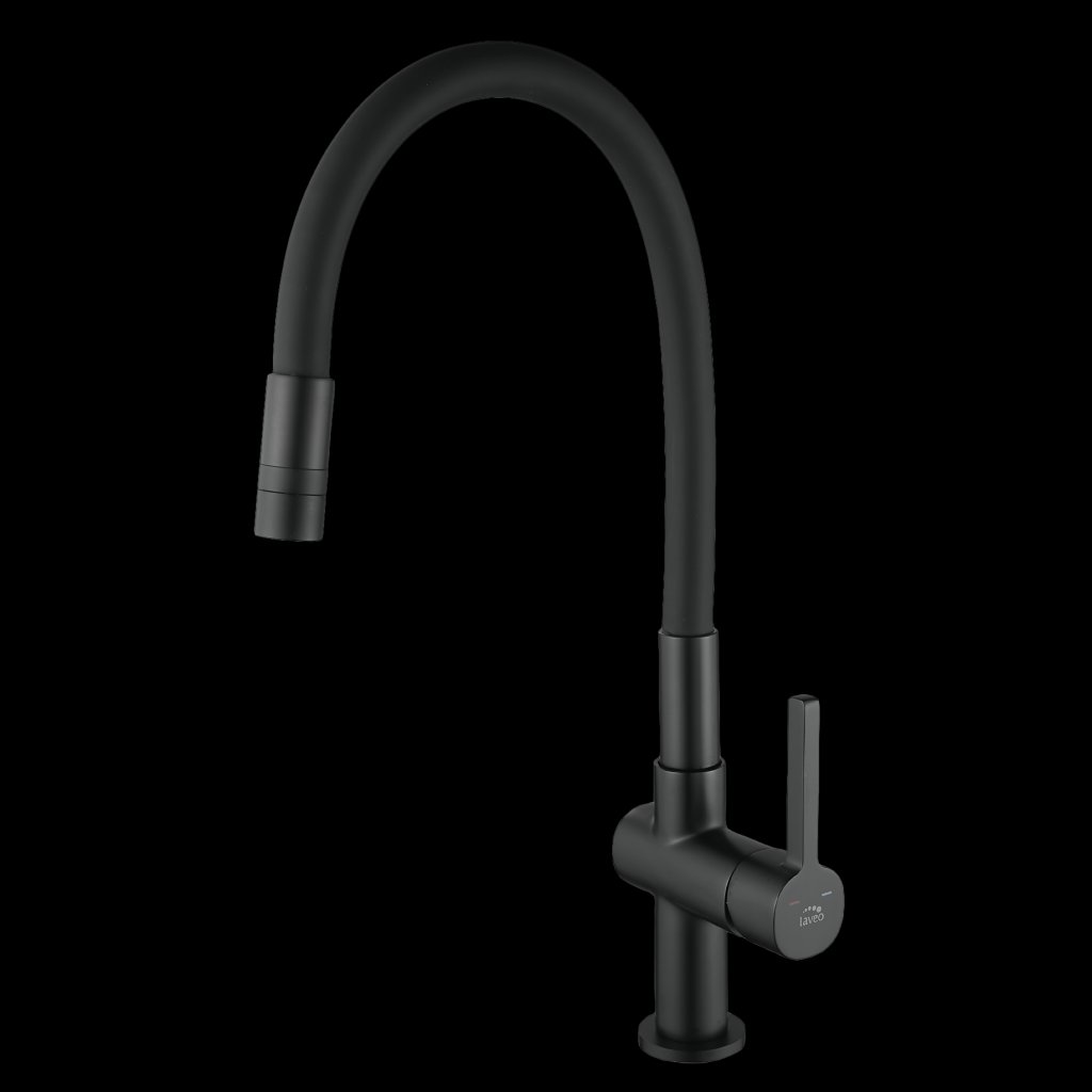 Laveo Alita, stojánková dřezová baterie s elastickým ramenem, 2-funkční výtok, černá matná, LAV-BVA_B62D