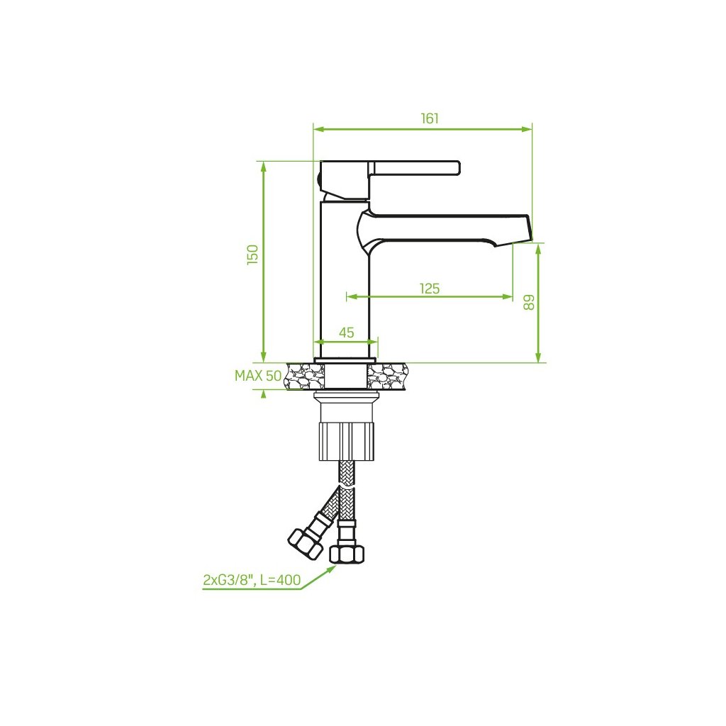 Dosah výtoku: 125 mm
