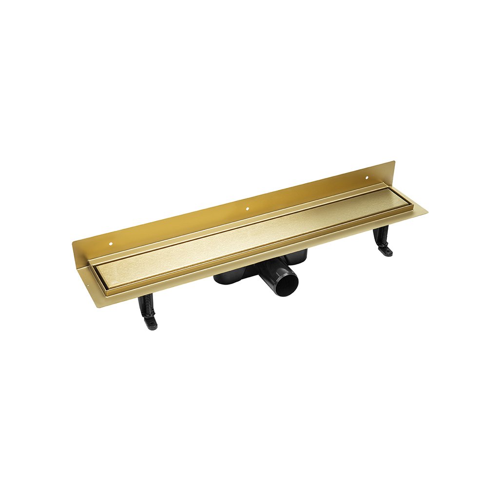 Laveo BASSO je nástěnný (přístěnný) lineární sprchový žlab určený k montáži ke stěně. Vyniká elegantním zlatým povrchem , moderním minimalistickým vzhledem a velmi kvalitním zpracováním.