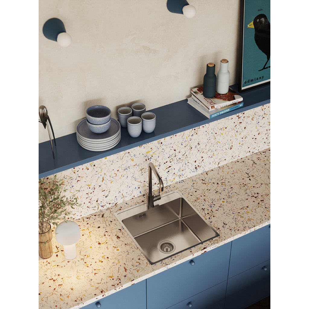 Besos je nejnovější návrh ocelových dřezů, který je určen pro většinu kuchyňských prostor. Jednoduchý geometrický tvar v nerezovém provedení dodává modelu elegantní a moderní vzhled, který se perfektně hodí do syrových a moderních interiérů kuchyně. Besos se vyznačuje mimořádnou funkčností, a to zejména díky velké a 19,5 cm hluboké míse, která je kompletně odhlučněna, což zajišťuje minimalizaci hluku při každodenní práci v kuchyni. Umyvadlo s předem vyříznutým otvorem pro baterii navíc výrazně usnadňuje instalaci a zajišťuje harmonický vzhled celého nastavení. Dřez Besos je vyroben z oceli 304, která poskytuje výjimečnou odolnost proti tepelným šokům, mechanickému poškození a změně barvy. Jedná se o jednokomorový model, který je zapuštěn do pracovní desky, což usnadňuje instalaci. Dřez Besos je dodáván se zátkou ve stejné barvě jako dřez a prostorově úsporným sifonem, který šetří místo ve skříňce pod dřezem. Díky nejkvalitnějším materiálům a podrobné kontrole kvality se na Besos vztahuje 15letá záruka a přístupový servis po celé zemi.