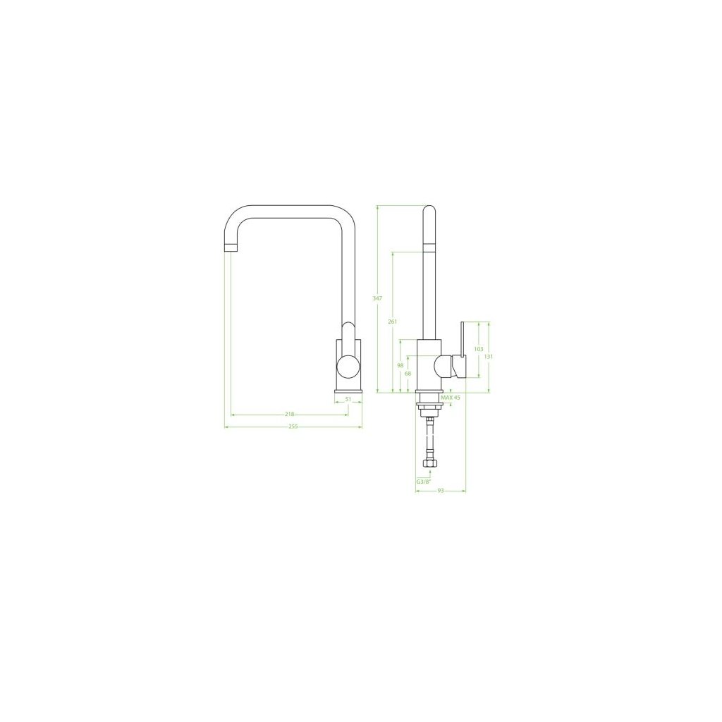 Bona - stojánková dřezová baterie s výtokem ve tvaru L.