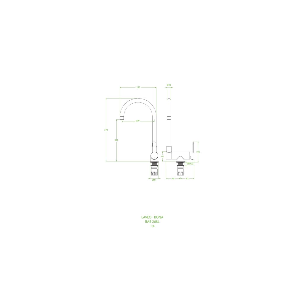 Laveo Bona, kuchyňská baterie stojící h-395, ušlechtilá ocel, LAV-BAB_268L
