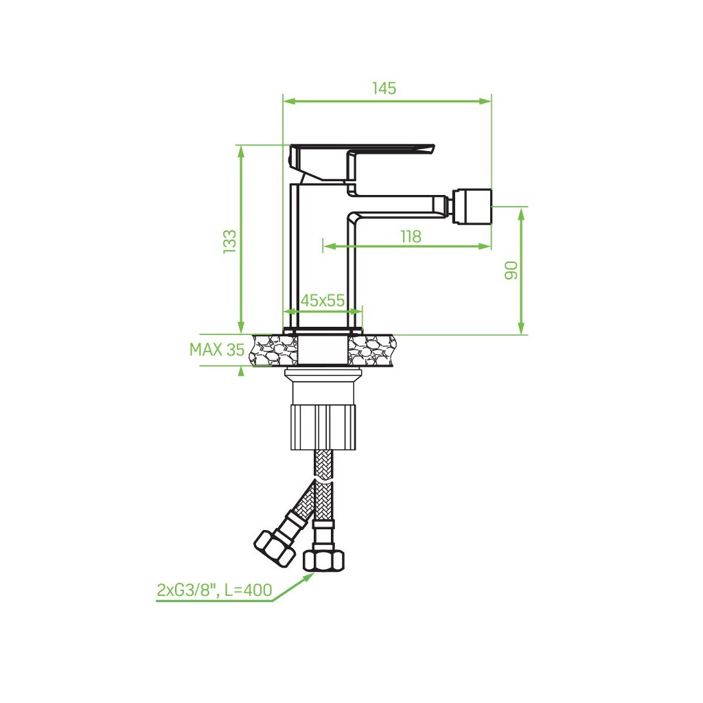 - Délka připojovacích hadic: 400 mm