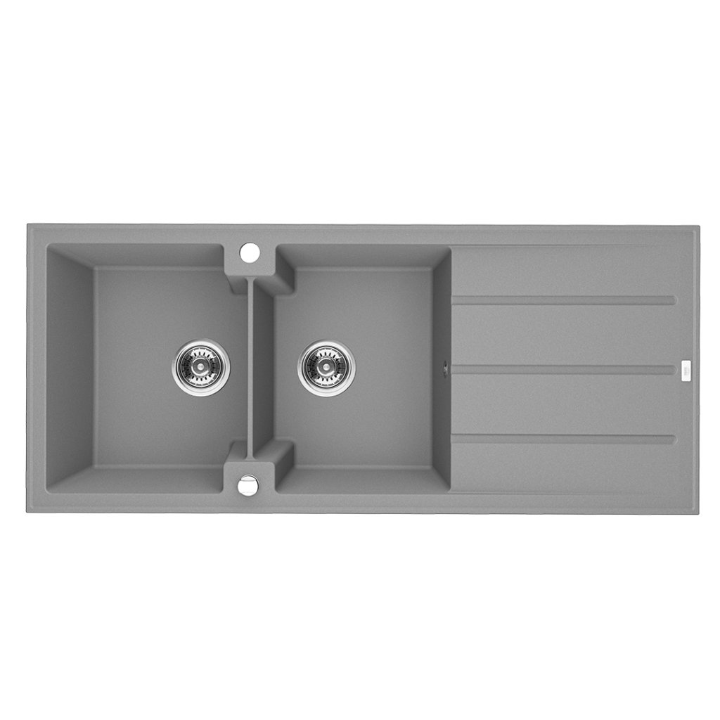 Laveo Canaria, 2-komorový granitový dřez 1160x500x207 mm, šedá, LAV-SPC_521T