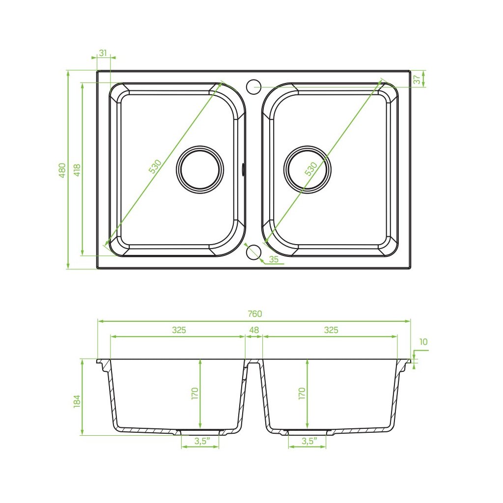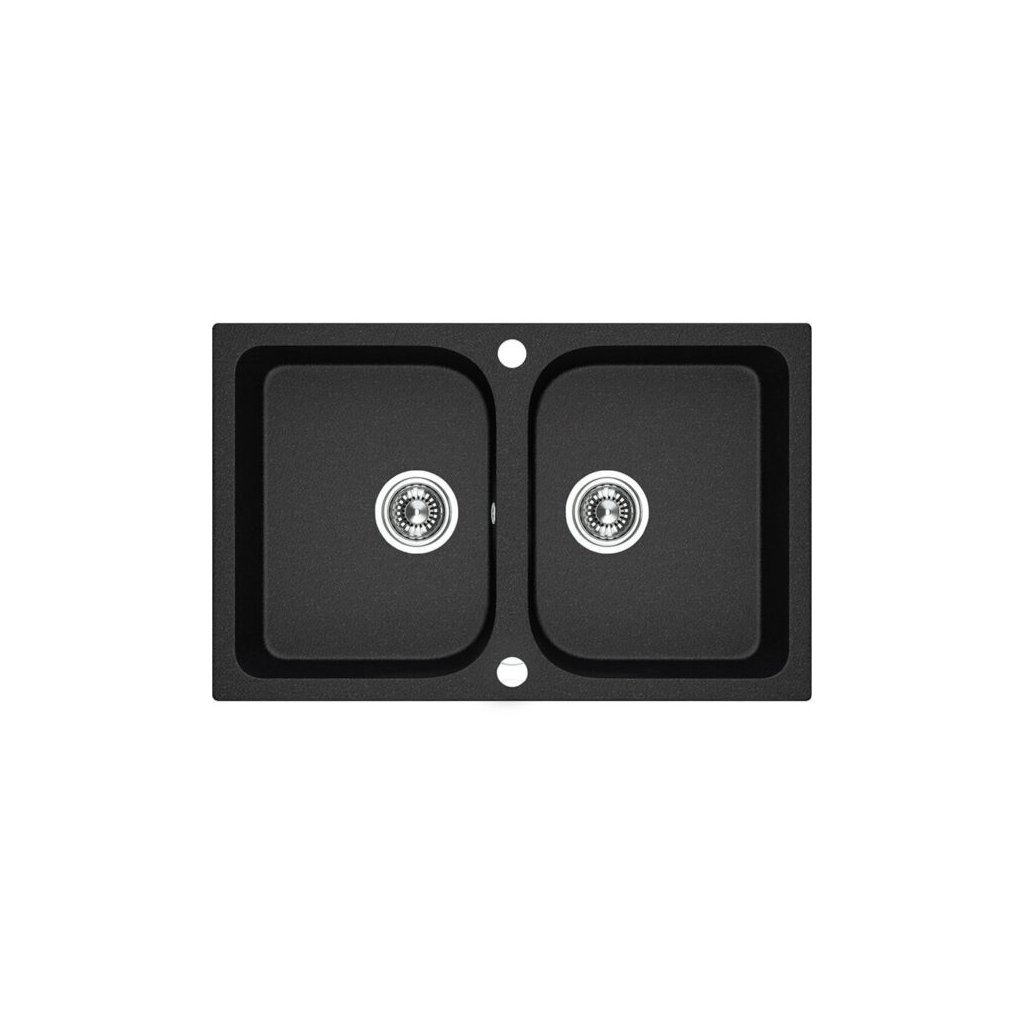 Laveo Celia, 2-komorový granitový dřez 760x480x184 mm, černá, LAV-SBC_720T