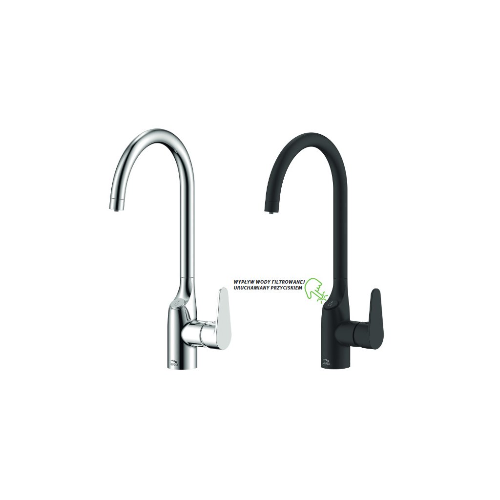 Model kuchyňské baterie s připojením na filtr vody. Díky tlačítku umístěnému v těle baterie můžeme pít filtrovanou vodu přímo z vodovodu. Sada baterií Claro obsahuje další třetí hadici, kterou lze připojit k filtru namontovanému pod umyvadlem. Instalace je rychlá a snadná a samotný filtr je recyklovatelný. Dostupnost filtrů na trhu vám umožňuje přizpůsobit jej vašim potřebám a kvalitě vody, kterou máme v domácí instalaci. Filtrovanou vodu si můžeme vychutnat po dobu 6 měsíců, než bude třeba filtr vyměnit. Takové období vám umožní ušetřit na nákupu balené vody a přispět ke snížení množství plastů. Připojením filtru získáme sladkou vodu bez bakterií, virů, písku, bahna, rzi a nerozpuštěných látek – v závislosti na zvoleném modelu a typu filtru. K mytí nádobí nebo potravinářských výrobků nebo čištění kuchyně používáme nefiltrovanou vodu, jejíž proud je k dispozici v baterii pokaždé, když se páčka zatlačí dozadu (proud filtrované vody se aktivuje tlačítkem, takže nepoužíváme zbytečně nainstalovaný filtr). 360° výtok v kohoutku poskytuje baterií široký rozsah pohybu. Baterie je k dispozici ve dvou barevných variantách: klasický chrom a černá.