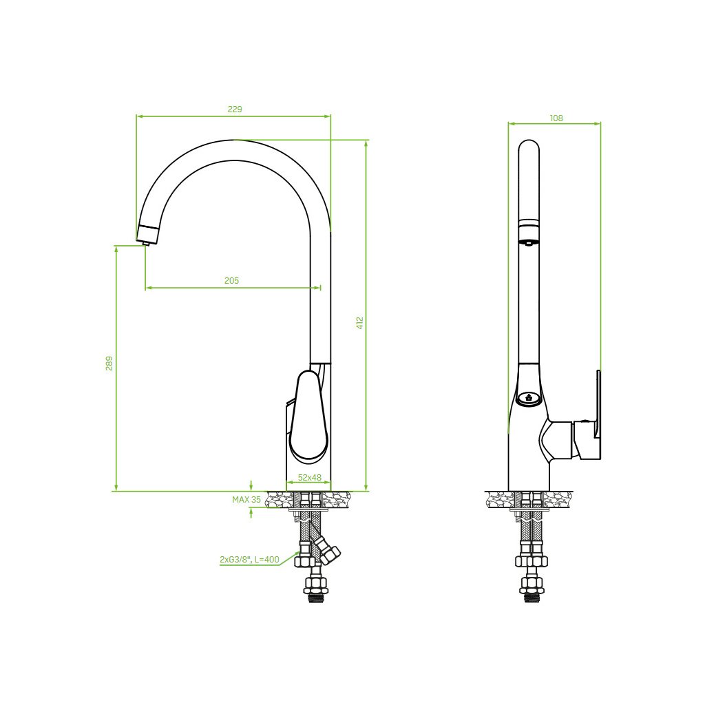- Rozsah výtoku: 205 mm