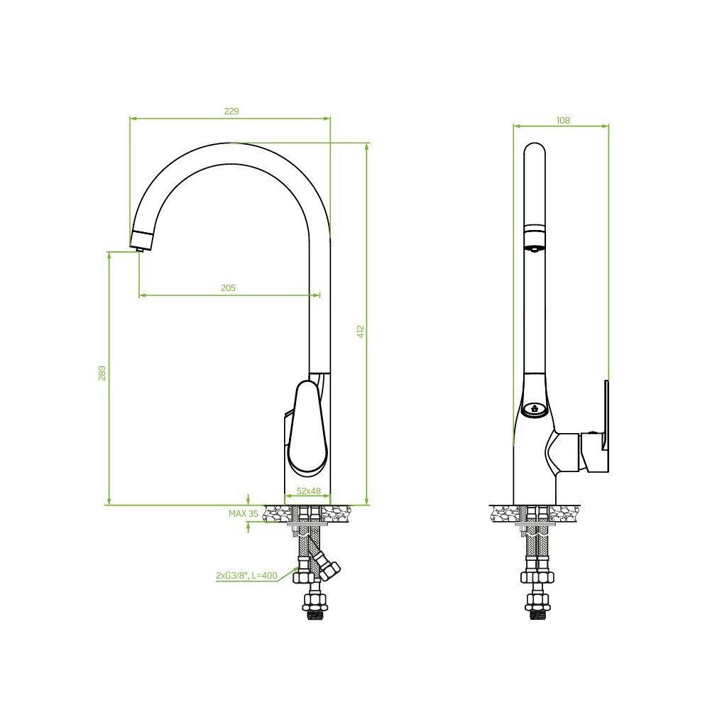 Laveo Claro, vysoká dřezová baterie s filtrem na pitnou vodu, chromová, LAV-BAKB098D