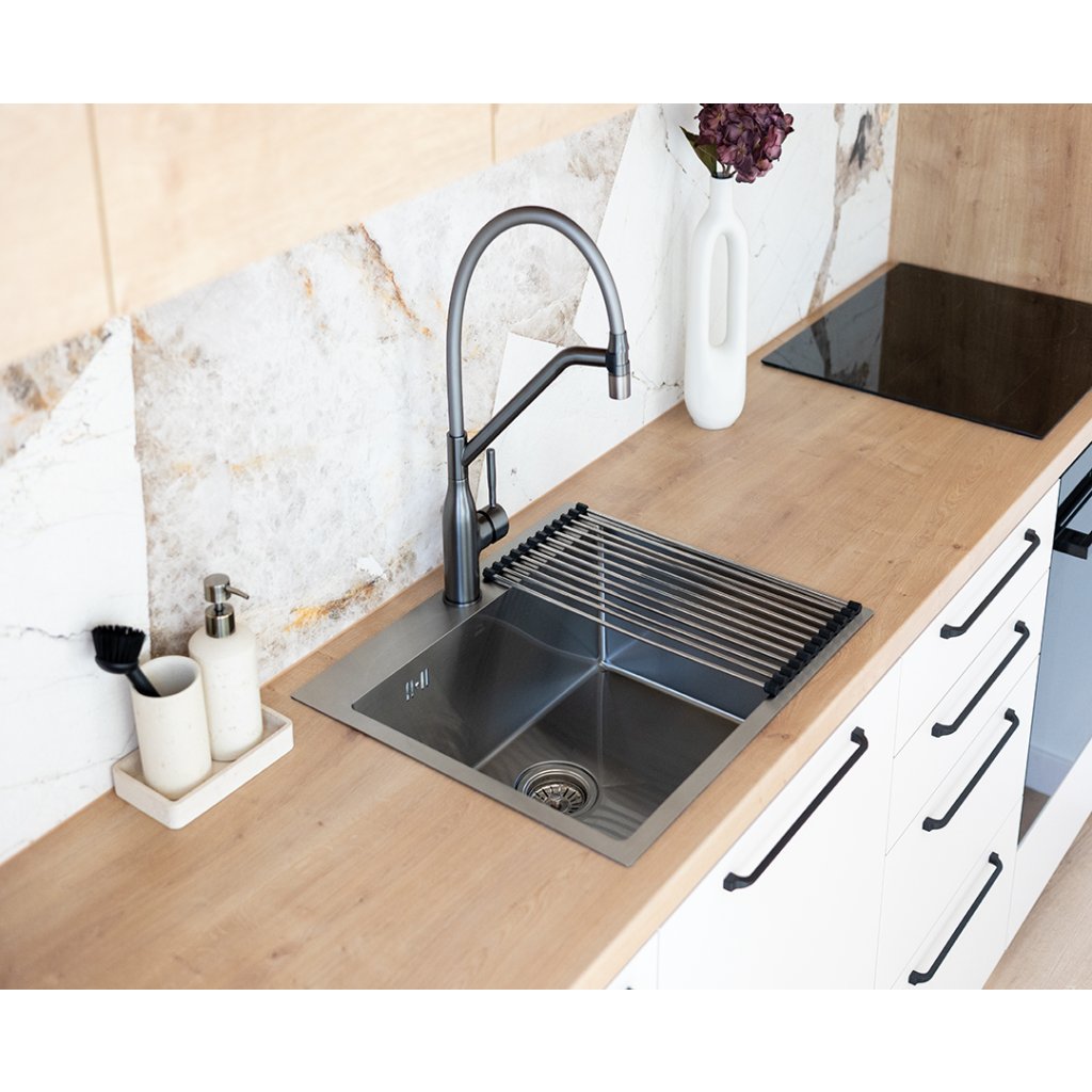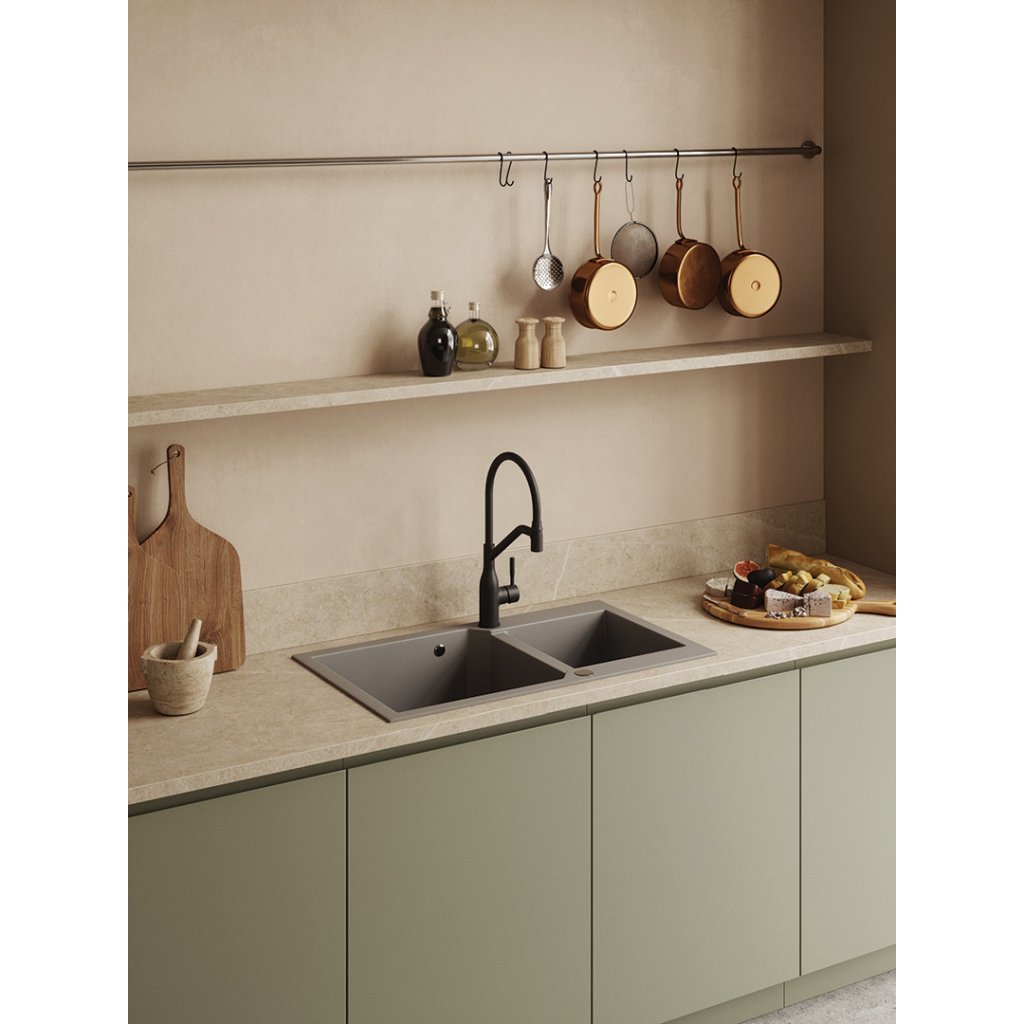 Dřezová baterie Colina v grafitovém provedení je kombinací moderní estetiky s bezkonkurenčním komfortem používání. Jeho jemná forma a pečlivě rafinované detaily z něj dělají dokonalou volbu pro loftové, industriální a minimalistické kuchyně. Matný povrch v odstínu grafitu dodává interiérům elegantní, ale zároveň syrový charakter, který se dokonale hodí k moderním aranžmá.