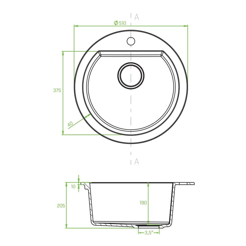 Laveo Dafne, 1-komorový granitový dřez 510x510x205 mm, šedá, LAV-SBD_580T