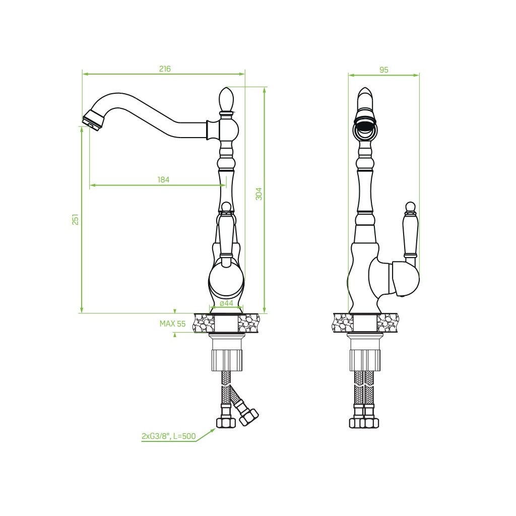 - Délka připojovacích hadic: 500 mm