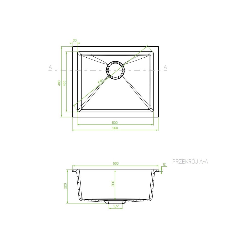 - Typ: 1-komorový granitový dřez bez odkapávače