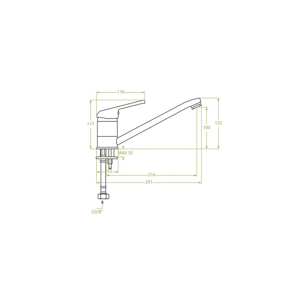 - dosah výtoku: 216 mm