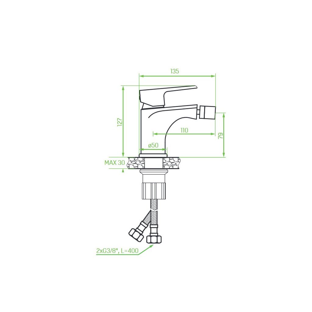 - Délka připojovacích hadiček: 400 mm