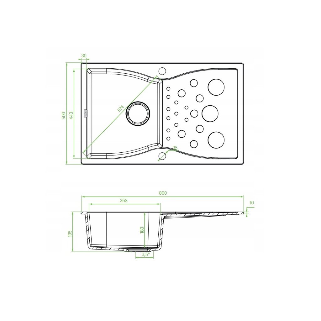 ➡️ Kruhový vzor na odkapávači MOLOKIN má dvojí úlohu. Není to jen dekorativní prvek, který dodává umyvadlu jedinečný charakter, ale především praktické řešení. Tato struktura podporuje účinný odtok vody z mokrého nádobí, zabraňuje jejich stání ve vodě a urychluje sušení, což zvyšuje hygienu a pohodlí při každodenním používání.