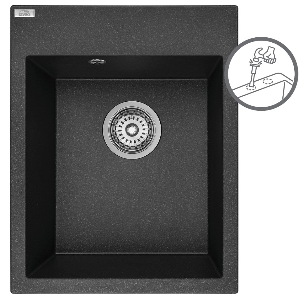 Laveo Monchichi, 1-komorový granitový dřez 390x500x205 mm, černá, LAV-SBO_710Y
