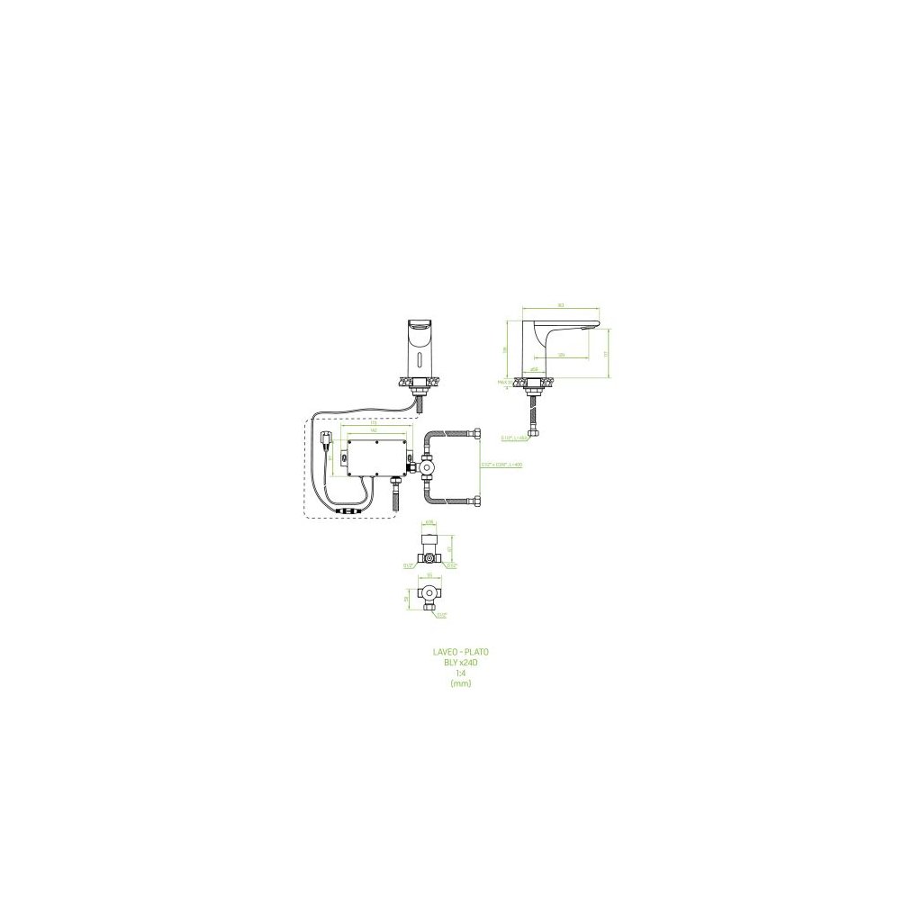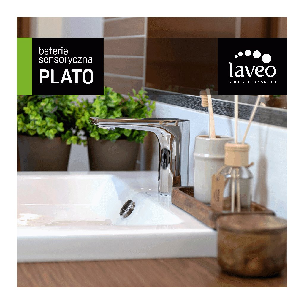 Laveo Plato, bezdotyková umyvadlová baterie s externí regulací teploty, stojánková, černá, LAV-BLY_724D