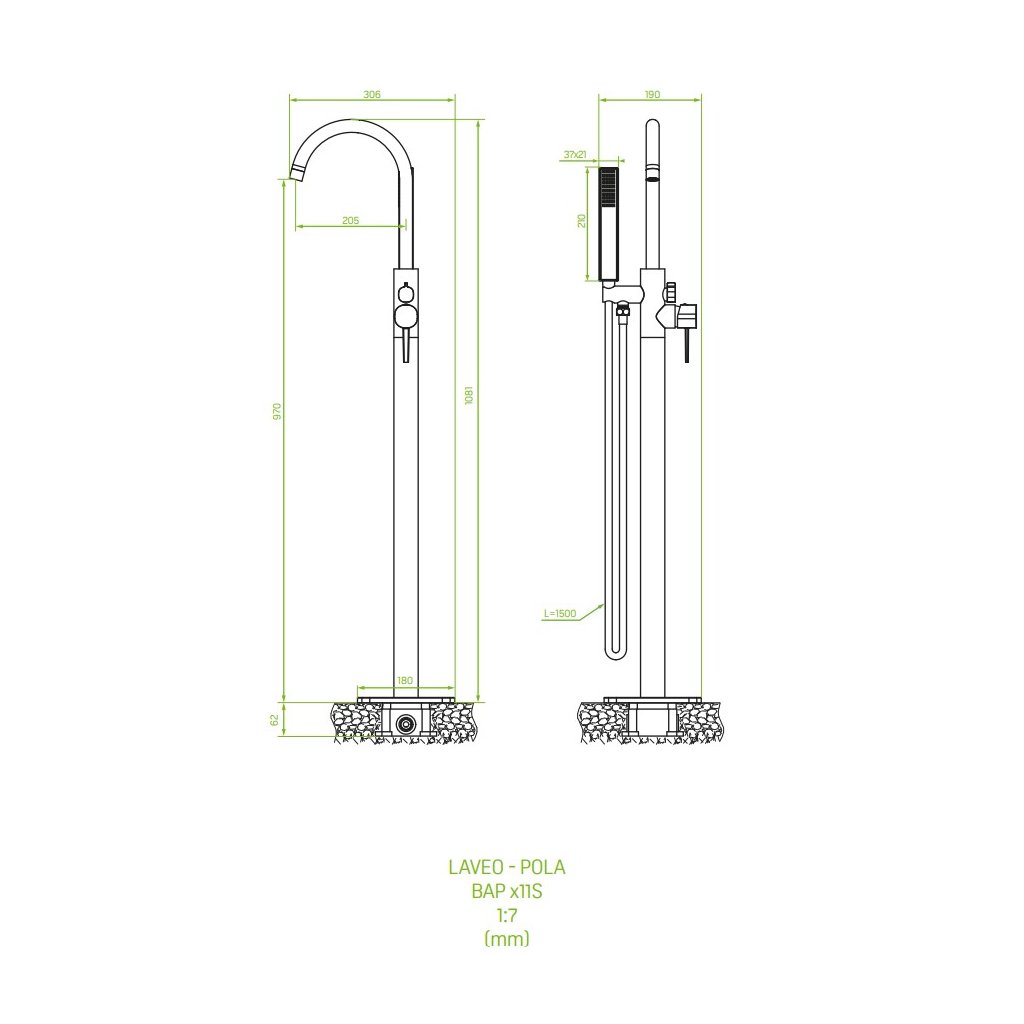 Laveo Pola, volně stojící vanová baterie h-1081, černá matná, LAV-BAP_711S