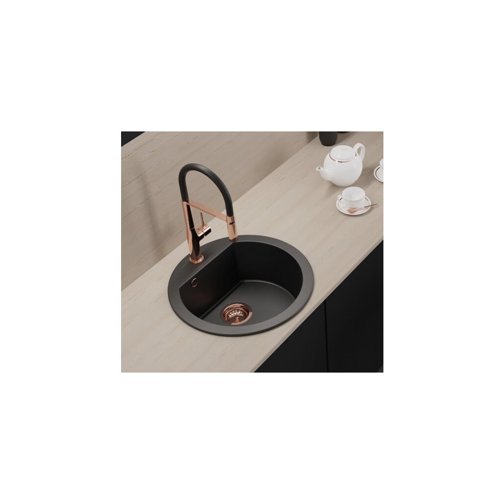 Laveo Pola, vysoká dřezová baterie s výlevkou ve tvaru U, růžové zlato-černá, LAV-BAP_878D