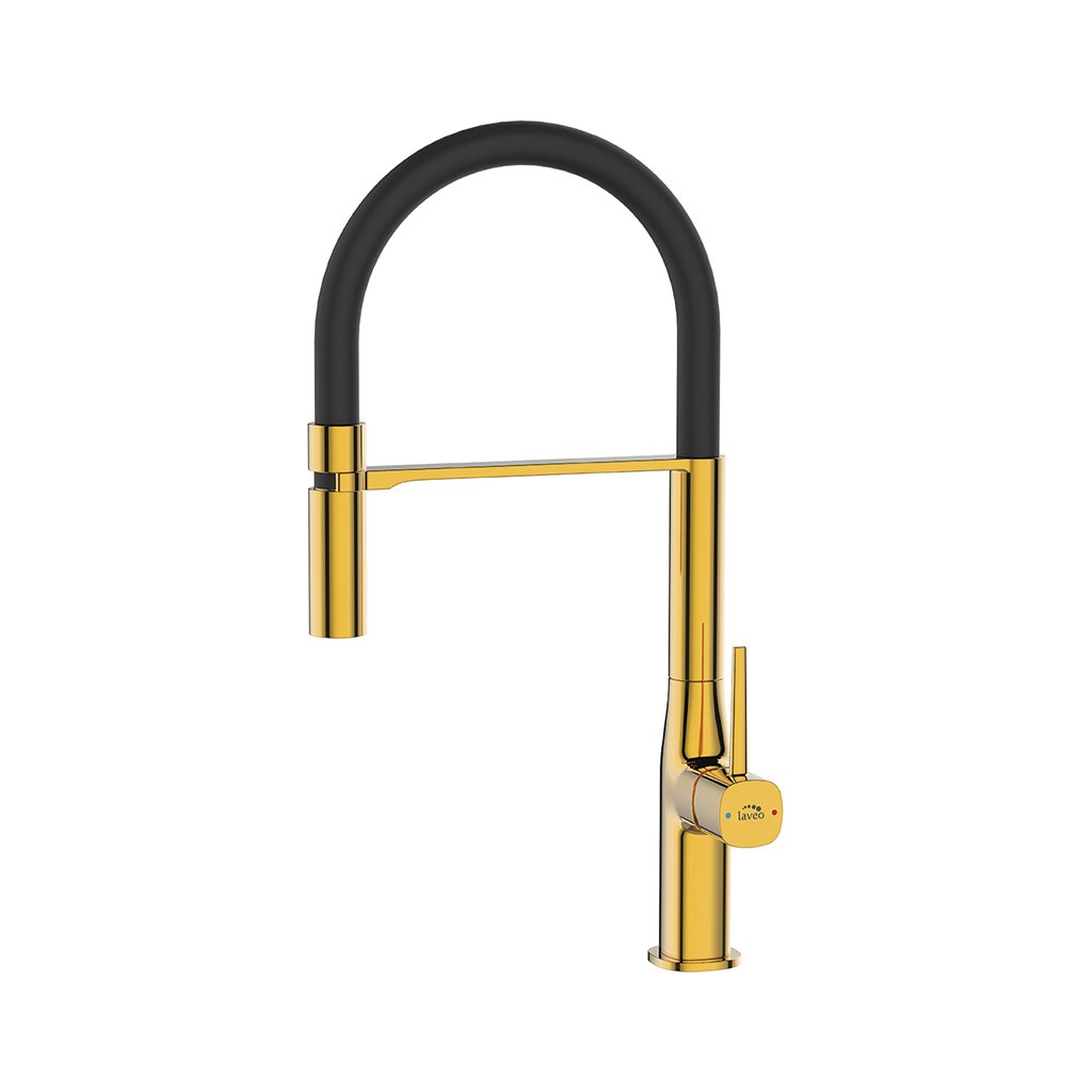 Laveo Pola, vysoká dřezová baterie s výlevkou ve tvaru U, zlatá-černá, LAV-BAP_G78D