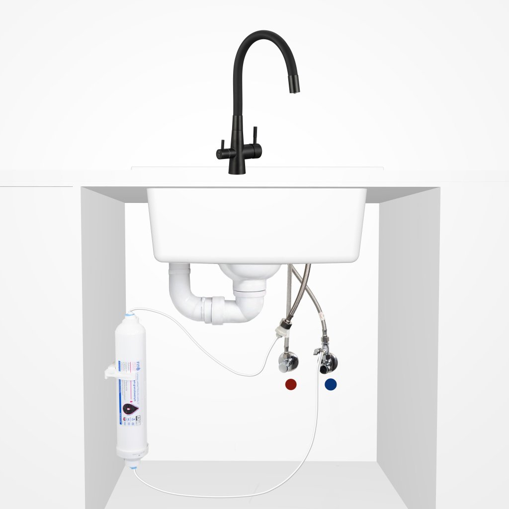 - Ne, design baterie Riveco zajišťuje úplné oddělení proudů. Filtrovaná voda protéká vyhrazeným samostatným kanálem uvnitř výtoku a aktivuje se samostatnou pákou. To znamená, že nehrozí její smíchání s obyčejnou nefiltrovanou vodou z vodovodu, což zaručuje čistotu a hygienu pitné vody.