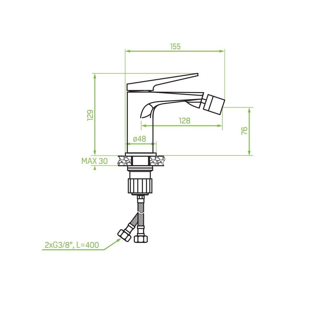 Bidetová baterie Rubio je ideálním modelem pro moderní koupelny. Kombinace bílé s pákou, hrotem výtoku a prstenem ukončeným žlutým zlatem vypadá mimořádně působivě. Elegantní charakter baterie dodávají speciální sklony, připomínající broušené drahokamy. Baterie je dodávána s barevně sladěnou zlatou odtokovou zátkou typu ClickClack, která umožňuje efektivní zavírání a otevírání průtoku vody. Pohyblivý kryt provzdušňovače umožňuje pohodlné používání bidetu. Díky třídě nízkého průtoku spotřebuje baterie málo vody, což výrazně snižuje množství účtů. Instalace baterie je díky jednoduchému instalačnímu systému rychlá a efektivní, bez potřeby nástrojů.