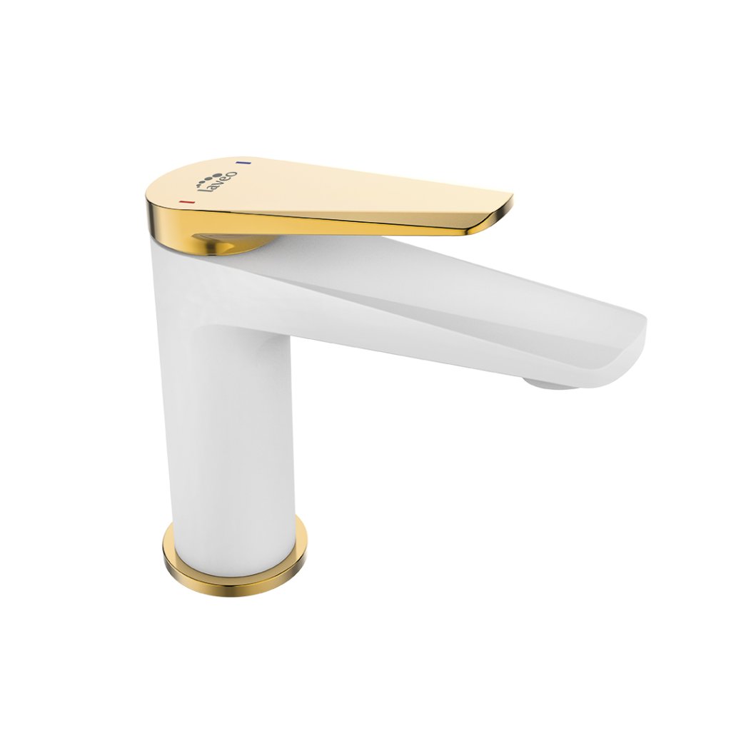 Laveo Rubio, umyvadlová baterie h-148 s odtokovou zátkou ClickClack, bílá-zlatá lesklá, LAV-BVR_622G