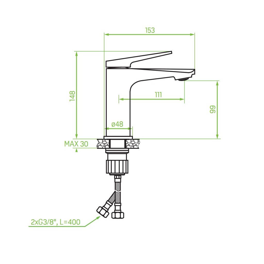 - Délka připojovacích hadic: 400 mm