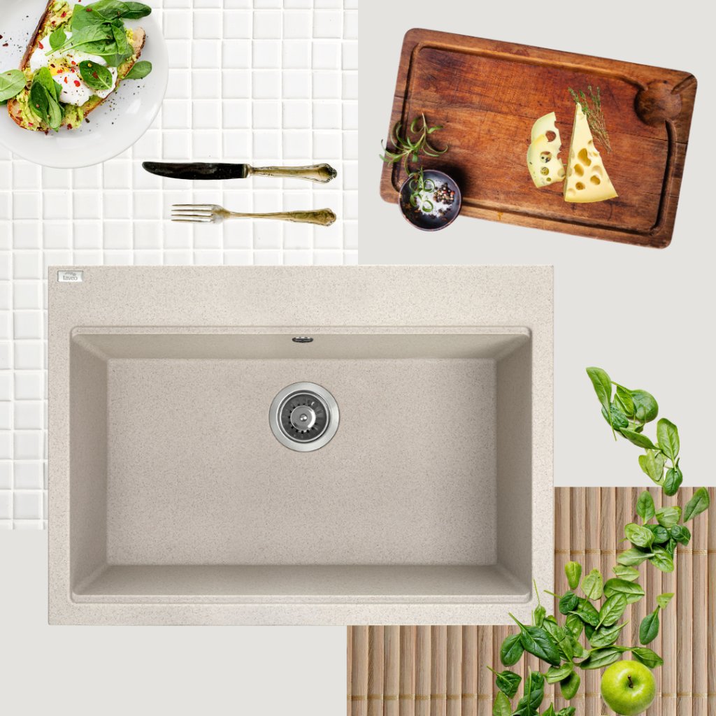 Laveo Tau, 1-komorový granitový dřez 700x500x215 mm, béžová, LAV-SBT_4107