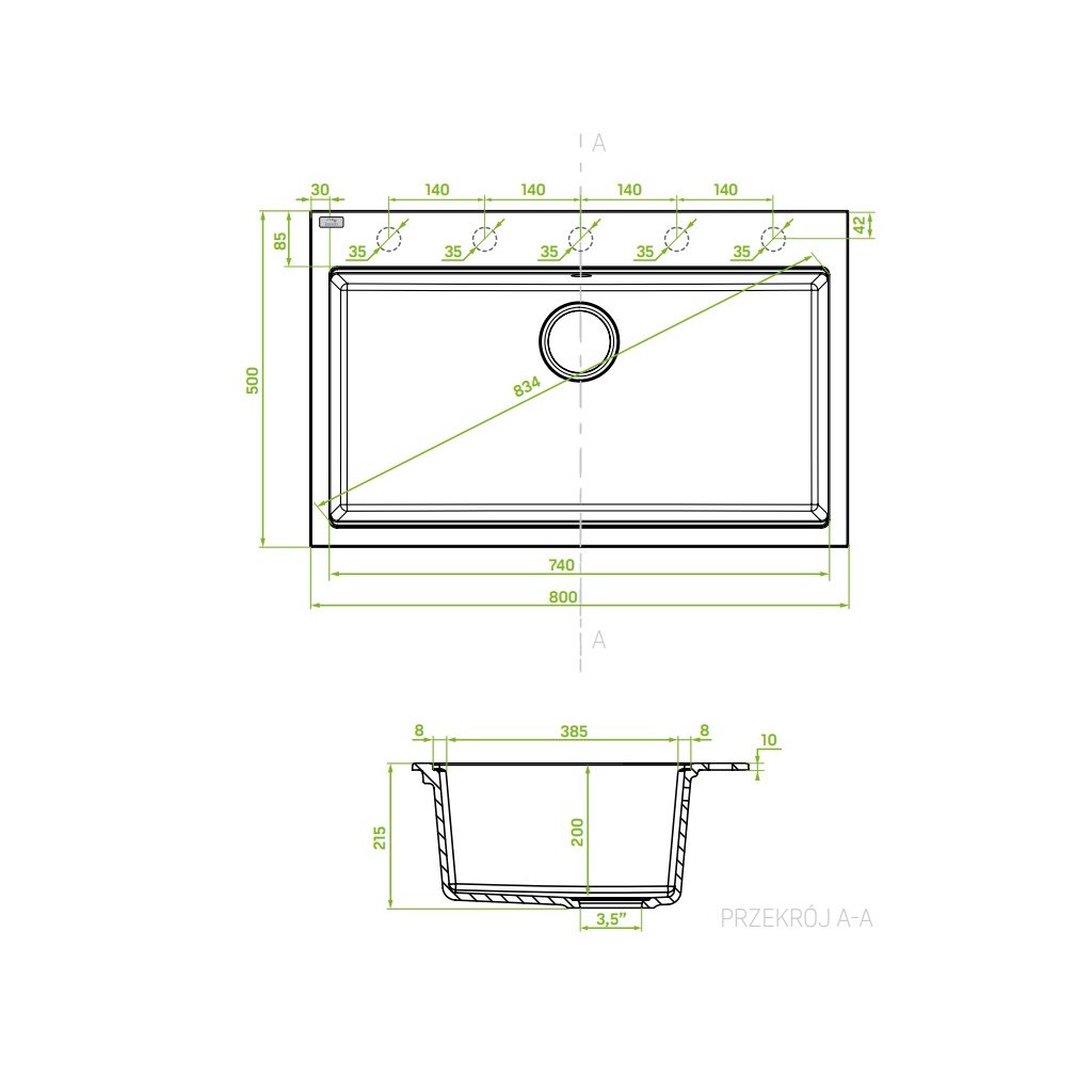 - Typ: 1-komorový granitový dřez bez odkapávače