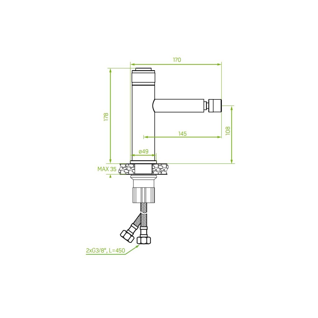 Laveo Volumo, bidetová baterie h-178 s odtokovou zátkou ClickClack, černá matná, LAV-BAV_732D