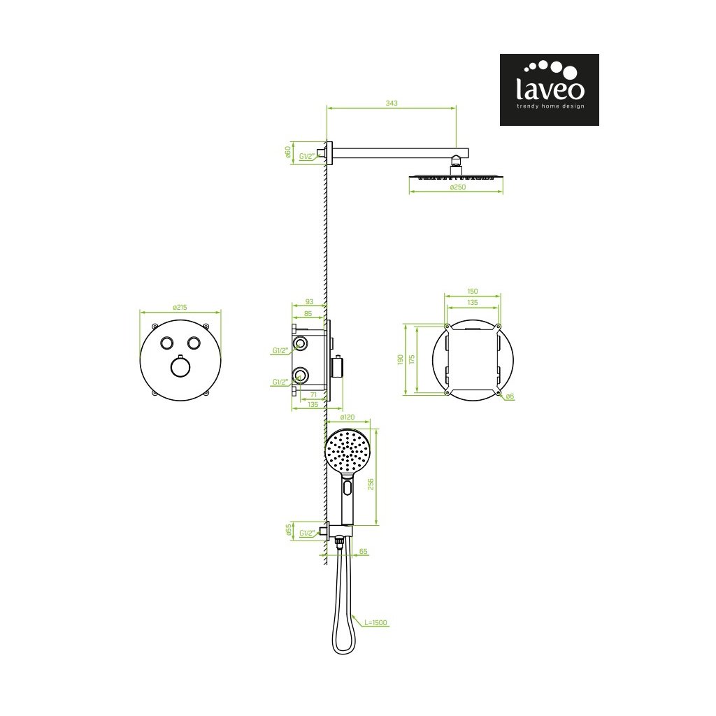 Laveo Volumo, podomítková sprchová souprava, chromová, LAV-BAV_00TP