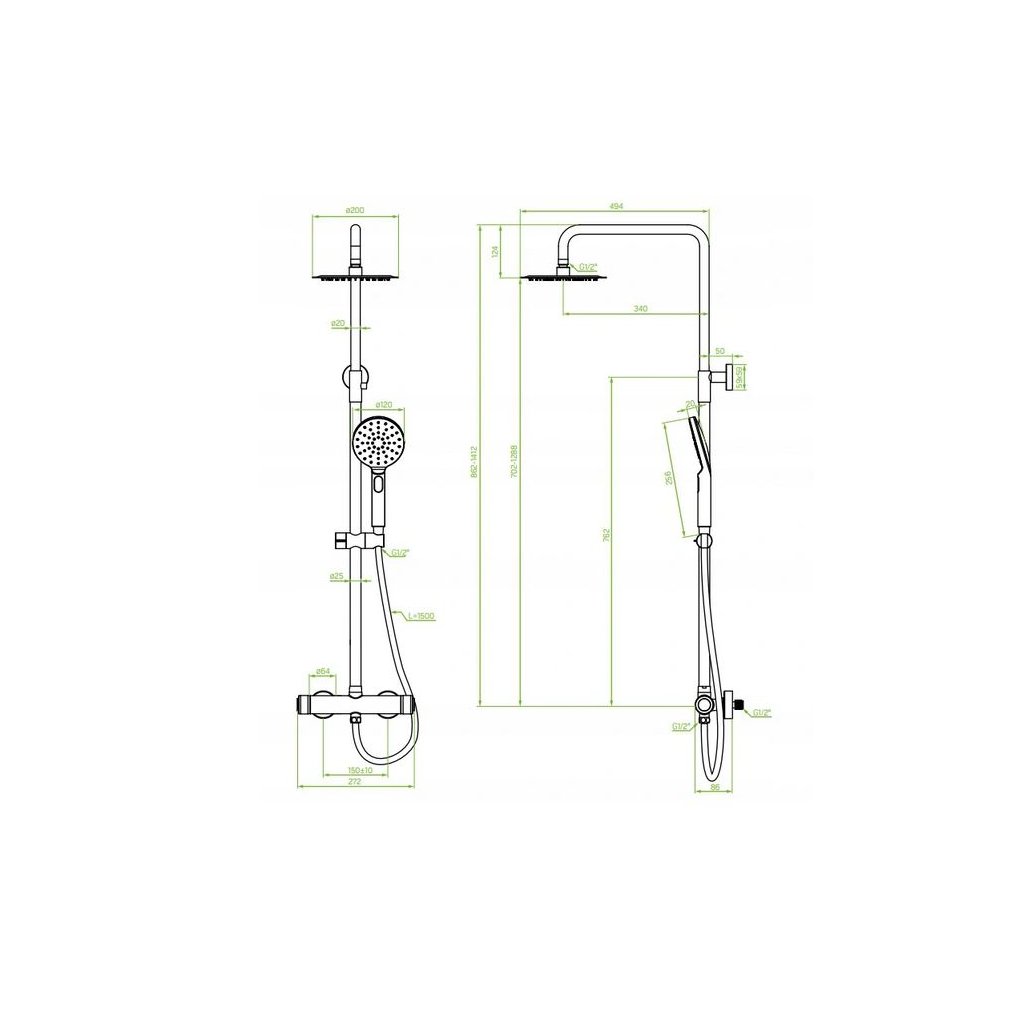- Rozměry horní dešťové hlavice: Ø 200 mm