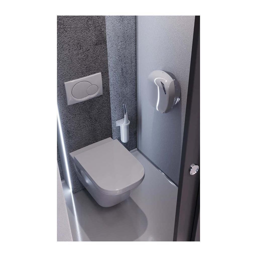 Kolekce SKIN pro veřejné prostory zahrnuje kompletní výběr koupelnových doplňků, které se vyznačují moderním designem. Doplňky v barevném provedení černá a písková jsou vyrobeny z recyklovaného plastu.