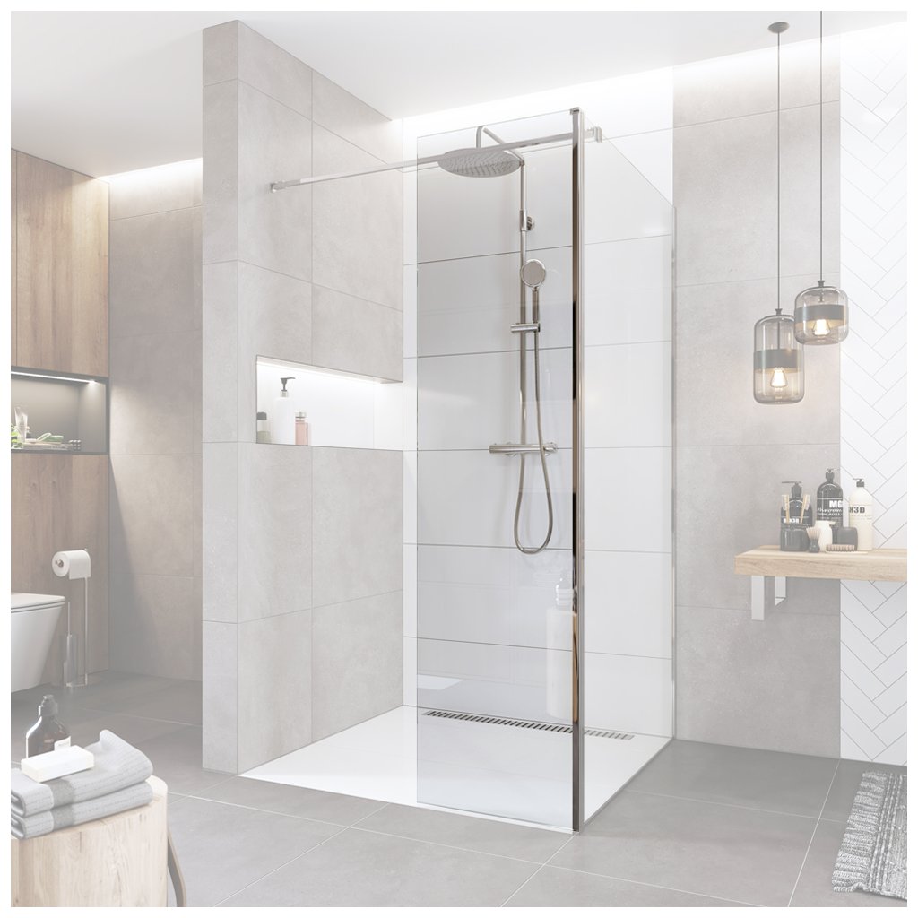 Sprchové stěny WALK IN jsou jediné, které se vám opravdu přizpůsobí. Sestavte si svůj sprchovací prostor na míru. Sprchový kout typu WALK IN si můžete poskládat v několika možných kombinacích. Stabilitu bezpečnostní skla zajišťuje elegantní kovová vzpěra a v případě montáže na zeď i boční stavitelný profil, které nenarušují designovou čistotu celého koutu, nejedná se však o hermeticky uzavřený výrobek.