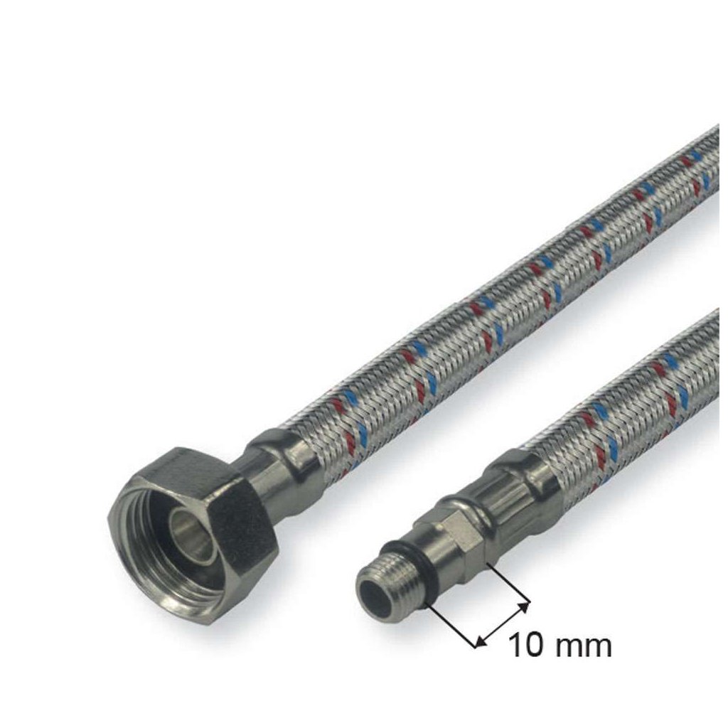 Nerezová připojovací hadice na vodu se velmi často používají k připojení WC, nádržek, stojánkových vodovodních baterií a jiných zařízení. Hadice jsou vyrobeny z vysoce jakostního EPDM s opletem z kvalitní nerezi a s poniklovanými koncovkami z mosazi s vnitřním a vnějším závitem podle evropských standardů ISO 228. Výhodou nerezových připojovacích hadic je velmi snadná manipulace a montáž. Umožňují také částečné pohlcení hydraulických rázů. Na hadice nesmí působit agresivní prostředí a látky způsobující korozi. Hadice jsou vhodné pro rozvody vody, vzduchu a neabrazivních a neagresivních kapalin s maximálním tlakem do 10 bar a provozní teplotou max. 95 °C.Doplňkové parametry