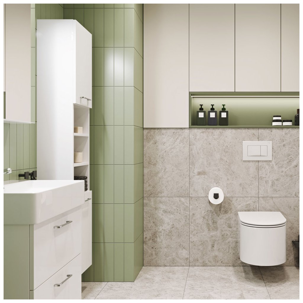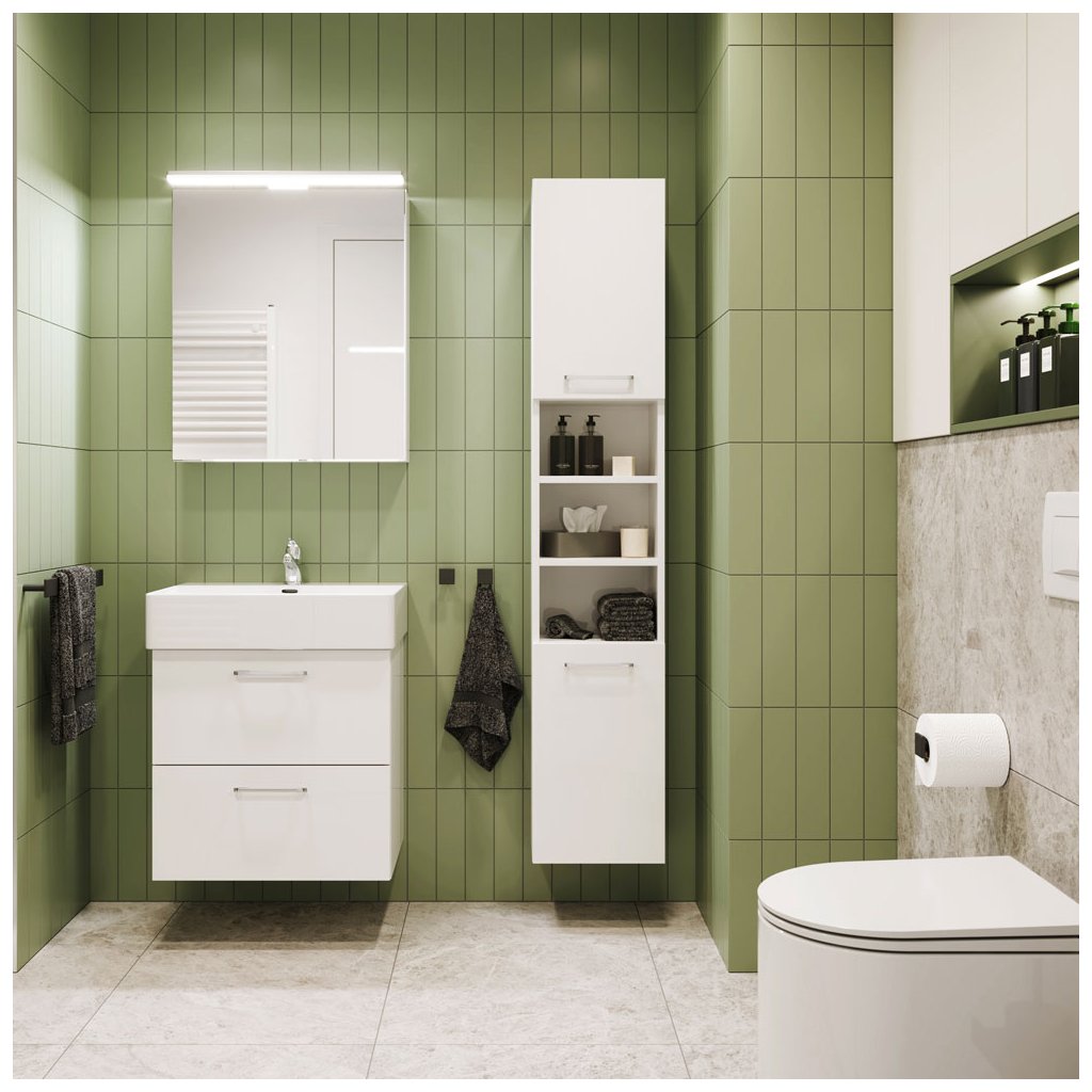 Mereo, Leny, koupelnová skříňka vysoká, 330x1700x250 mm, závěsná, s policemi, pravé otevírání, bílá lesk, MER-CN815N
