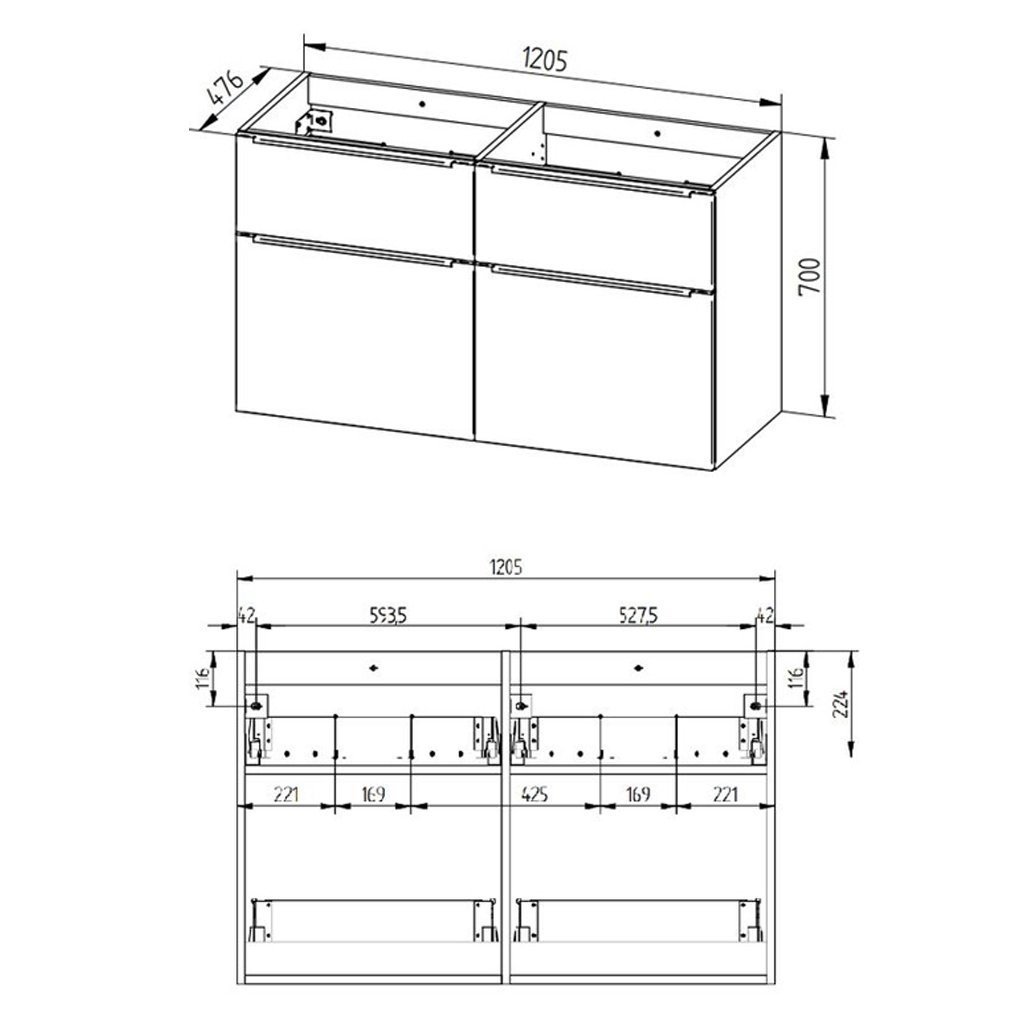 Série koupelnového nábytku Mailo umožňuje kombinovat skříňky do mnoha různých variant. Vytvořit tak lze jak složité kombinace do velkých koupelen, tak minimalistické řešení v moderním designu. Šuplíky jsou vybaveny designovými chromovanými úchytkami a značkovými pojezdy Strong s pomalým dovíráním. Na výběr je ze tří barevných kombinací, bílá lesk, dub Riviera a antracit. Skříňky mají laserové opracování hran a jsou dodávány smontované a všechny jsou určené k zavěšení.Nábytková keramická umyvadla s jedním otvorem pro stojánkovou baterii v luxusním SLIM designu o tloušťce hrany pouhých 20 mm. S těmito umyvadly se splní Vaše požadavky na jednoduché a zároveň atraktivní vybavení koupelny za atraktivní ceny. Benefity těchto umyvadel jsou bezesporu funkčnost a líbivý vzhled. Umyvadlo je určeno pro nábytek, nelze instalovat samostatně na zeď. Zápustná umyvadla podpoří moderní a elegantní vzhled každé koupelny a doladí tak celkový design interiéru. Umyvadla lze osadit do desky i ve více kusech vedle sebe.Riviera, antracit, 2 zásuvky.