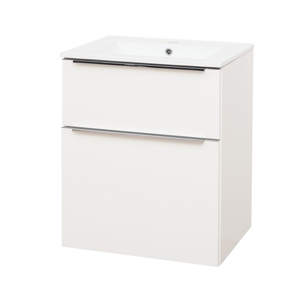 Mereo, Mailo, koupelnová skříňka s keramickým umyvadlem 61 cm, bílá, dub, antracit, CN510