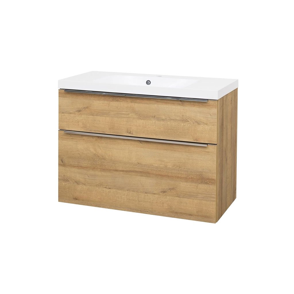 Mereo, Mailo, koupelnová skříňka s umyvadlem z litého mramoru 101 cm, bílá, dub, antracit, CN522M