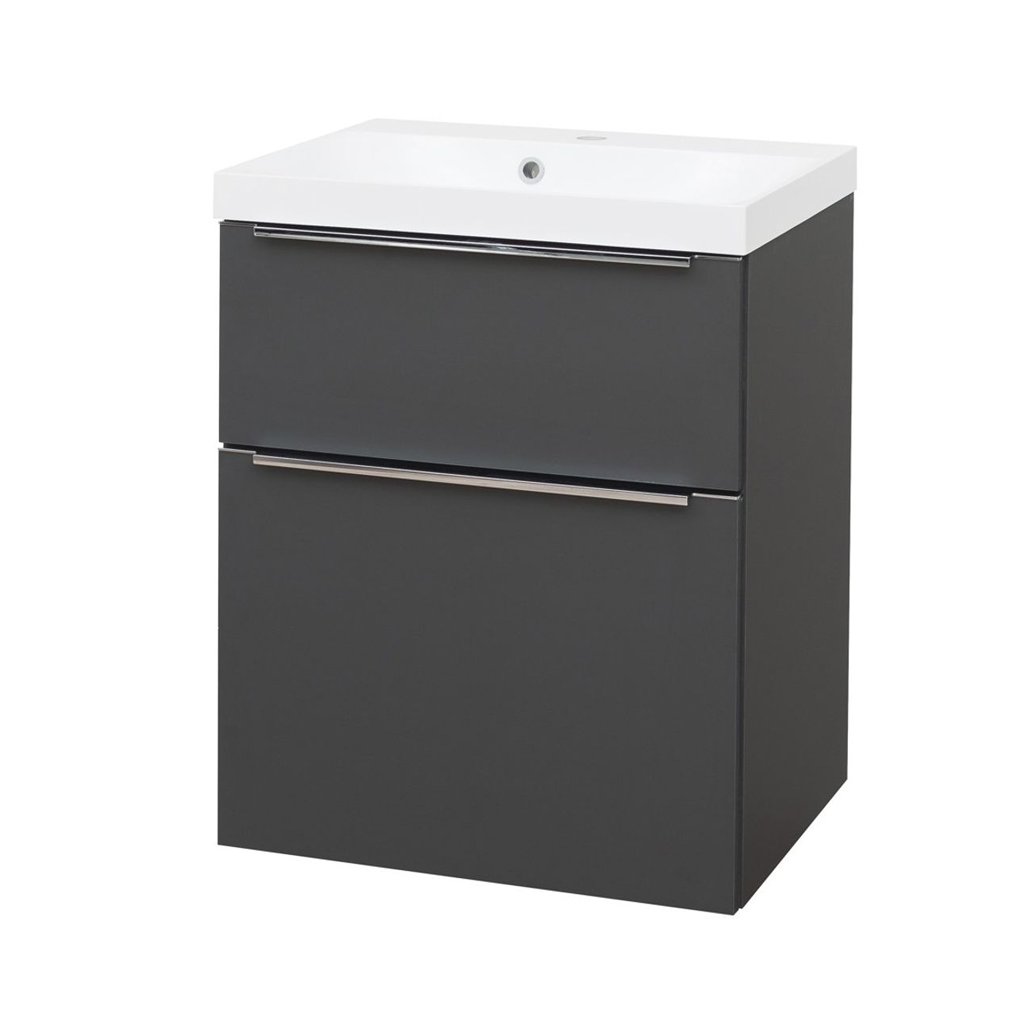 Mereo, Mailo, koupelnová skříňka s umyvadlem z litého mramoru 61 cm, bílá, dub, antracit, CN530M